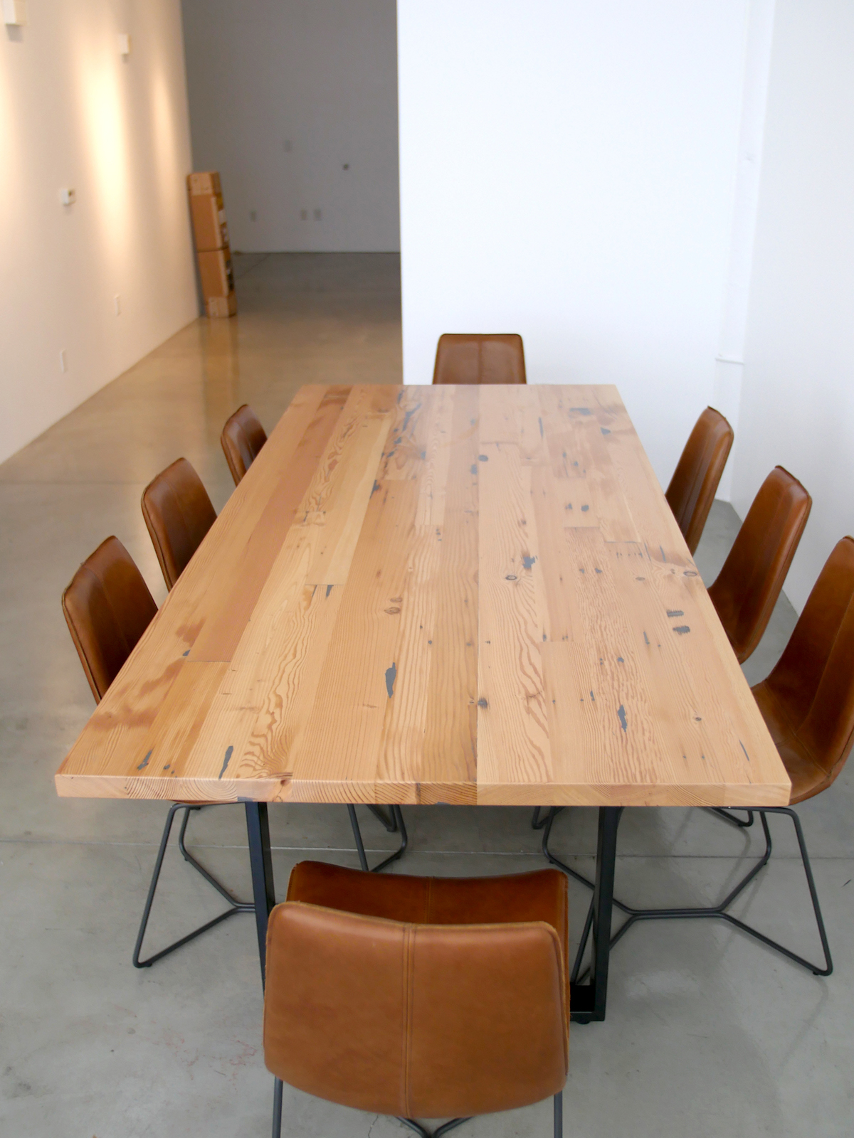 Full Plank style Reclaimed Doug Fir Top With Looped Steel Base