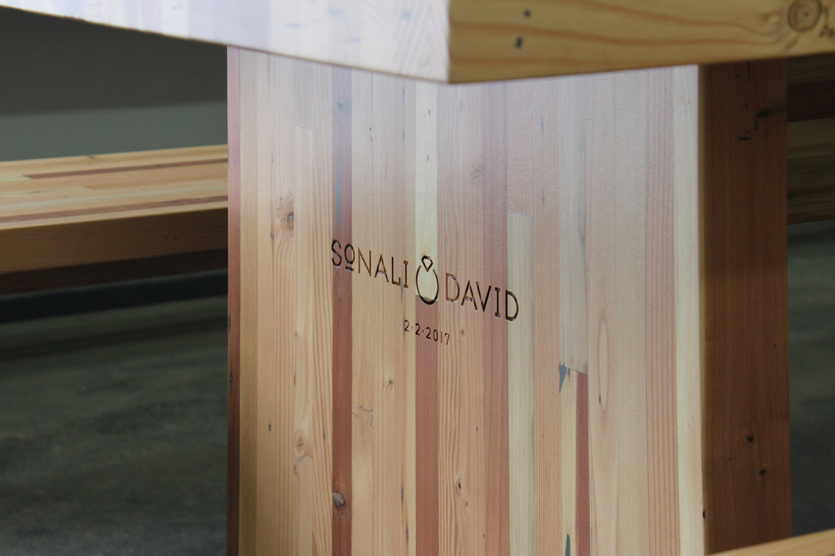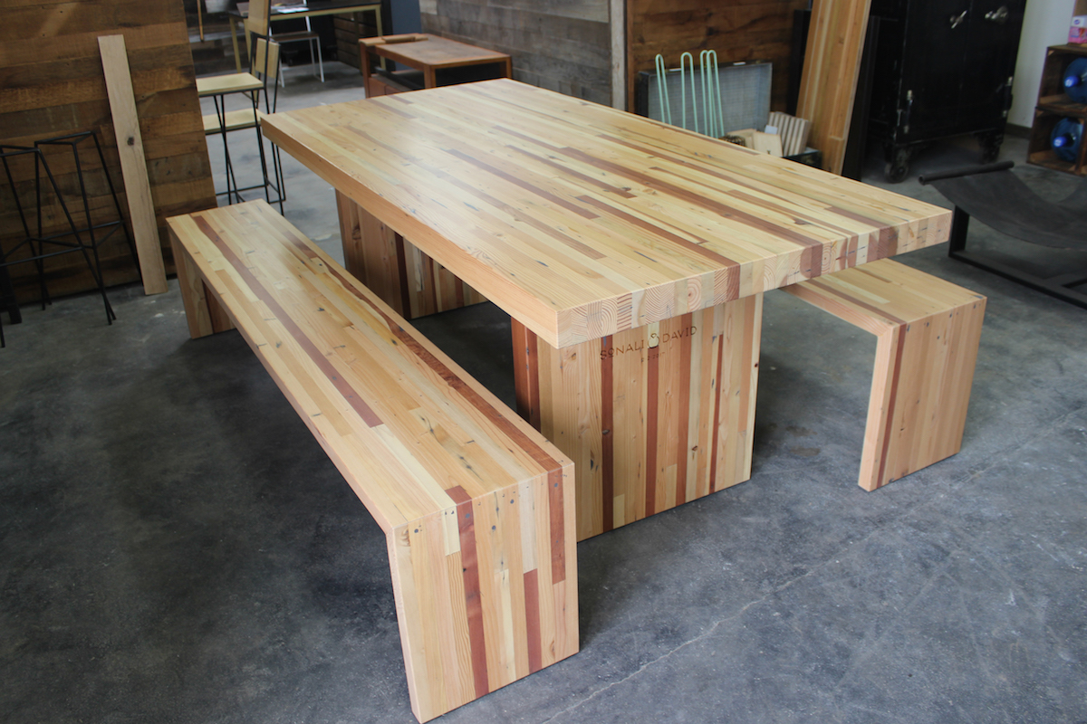 Reclaimed Doug Fir Butcher Block Dining Table with Benches